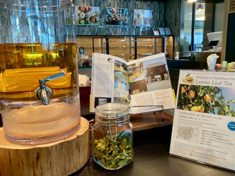Café & Buffet UmiShima Diningではウェルカムドリンクを新しくレモンリーフティーにて用意しております。広島県尾道市生口島産農薬・化学肥料不使用Remon.Labのレモンの葉を一枚一枚丁寧に摘み取り、爽やかな香りとやさしい味わいが特徴です。食前や滞在中のリフレッシュに最適な一杯をぜひお楽しみください。